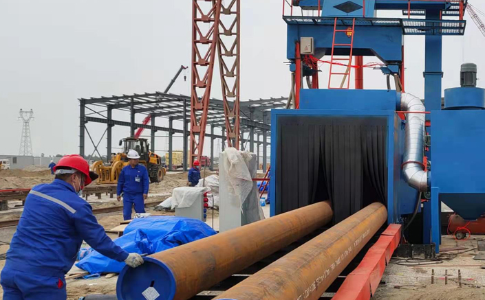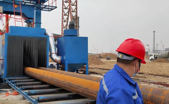 廣州揭陽(yáng)石化訂購(gòu)的通過(guò)式拋丸機(jī)安裝調(diào)試現(xiàn)場(chǎng) |